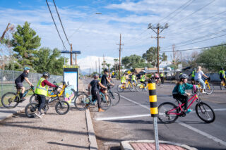 For the ride with FUGA, participants stopped at the Menlo Park wrap station in West Tucson, where Tugo talked about the project, Laraway, and the panelists. As a Living Lab grantee, Tugo also used this ride as an opportunity to point out potential bike share stations, which are part of their Living Lab project, to redistribute Tugo bike share stations to serve the south and west sides of Tucson more equitably. At the end of the ride, shared information on where residents can comment on the redistribution proposal.